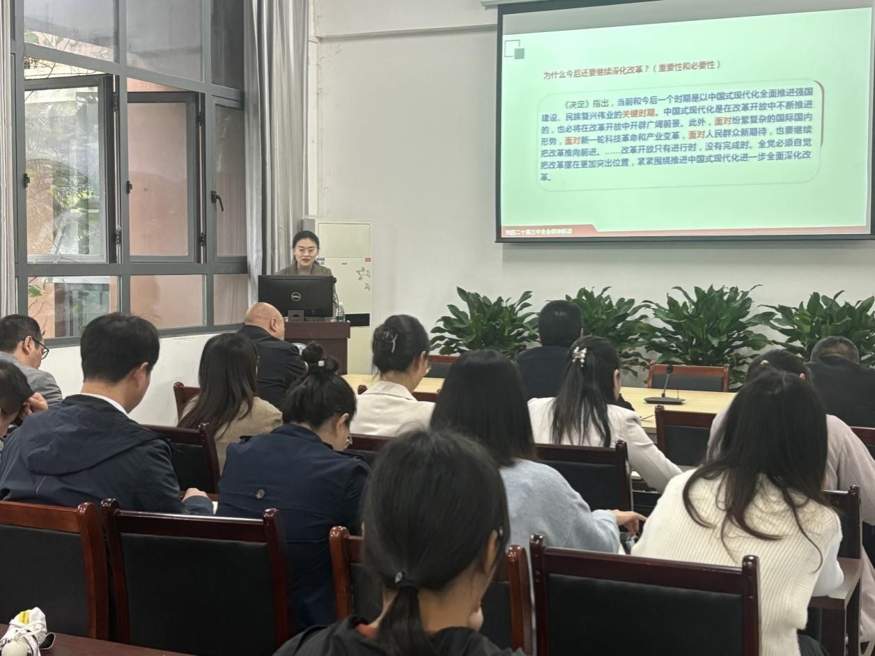 在宣讲过程中,雍老师紧扣党的二十届三中全会审议通过的系列重要文件,结合实际案例,生动形象地向与会人员解读了党的二十届三中全会精神的深层含义和实践价值。作为新时代新征程中具有划时代意义的会议,党的二十届三中全会高瞻远瞩地审议并通过了《中共中央关于进一步全面深化改革、推进中国式现代化的决定》,为新时代新征程上的中国式现代化指明了前进方向,提供了行动纲领。