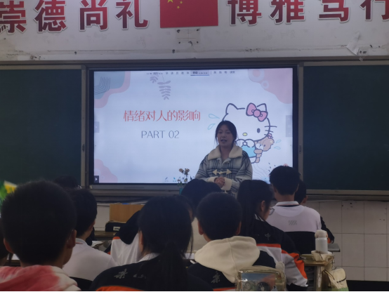 值得一提的是,在见习过程中,部分同学勇于站上讲台,为乐山一中高一年级的学子呈现了精彩的心理课。其中,有的同学讲解了情绪ABC理论,通过生动的实例和互动游戏,帮助同学们认识到情绪并非由事件本身引起,而是由我们对事件的认知和评价所决定。这一理论让同学们学会了如何调整自己的心态,积极面对生活中的挑战。还有的同学则围绕性格探索展开教学,通过性格测试和分析,帮助同学们更好地了解自己的性格类型,从而在学习和生活中发挥自己的优势,弥补不足。
