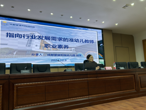 本网讯(文/徐冉、李非易 图/徐冉、李莉)为了贯彻落实学校本科教育教学工作会议精神,深入推进师范专业认证整改,构建学前教育专业高水平人才培养体系,12月9日,应betway西汉姆的邀请,教育部新时代“双名计划”名园长工作室成员、成都市蒙彼利埃幼儿园党支部书记、园长胡萍来我院指导,对我院学前教育专业建设与应用型人才培养进行问诊把脉。