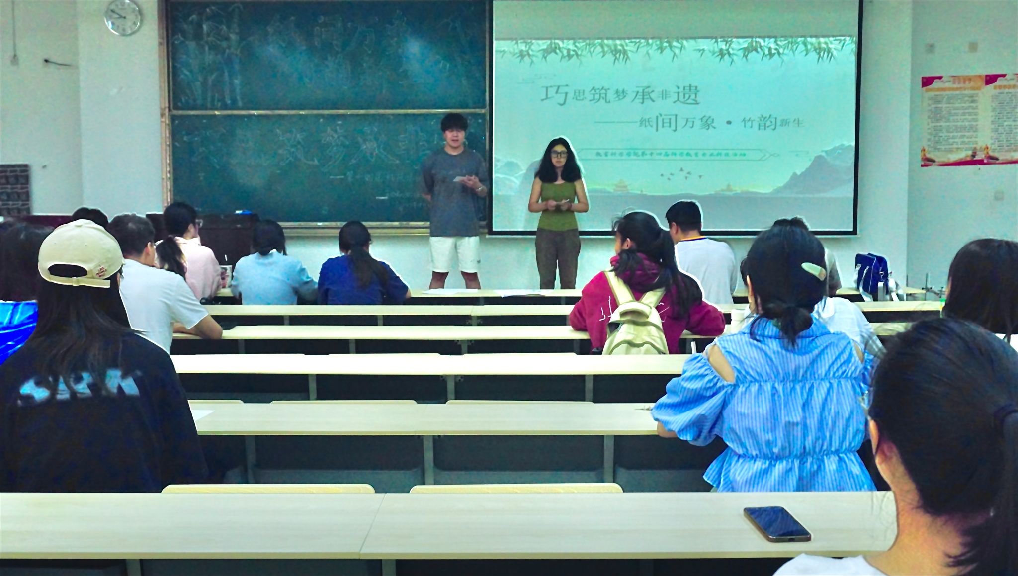 本网讯(文/张源苈、图/何梦铃)2025年4月18日,betway西汉姆科学教育专业在行知楼125教室举行以“巧思筑梦承非遗——纸间万象·竹韵新生”为主题的第十四届科技活动。本次活动以传统竹纸技艺为载体,结合现代科技教育理念,通过跨学科实践引导学生深入探索非遗文化的科学内涵与创新应用,吸引了2022级、2023级和2024级科学教育专业全体学生的积极参与。