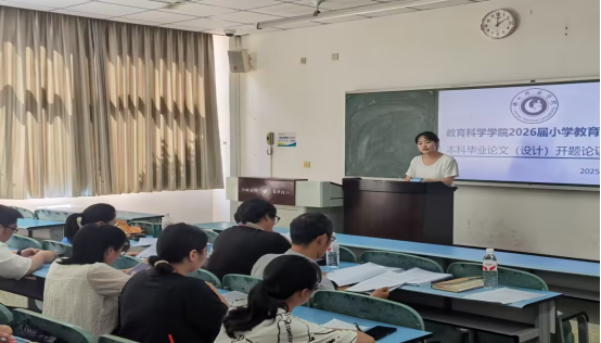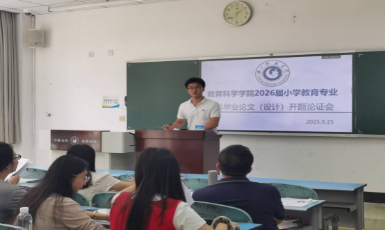 本网讯(图、文/张晓玲)2025年9月25日下午,我院在行知楼组织开展了2026届小学教育专业毕业论文开题论证会。本次论证会共有183名学生参与,分为8个小组,24位专任教师参加。学生人数多、任务重,我院小学教育专业通过周密安排与高效协作,确保了开题工作的有序推进。