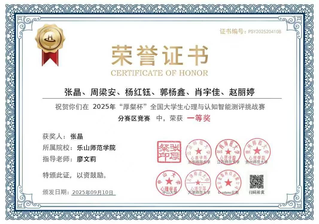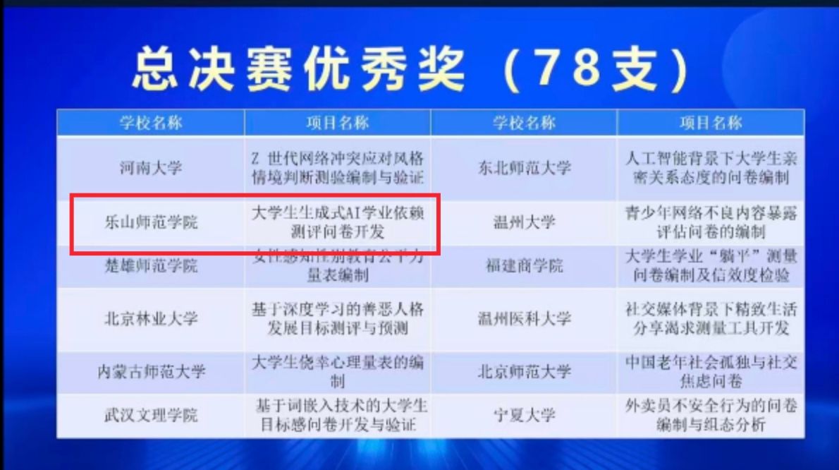 本网讯(文、图/黄雪菲) 近日,首届“厚粲杯”全国大学生心理与认知智能测评挑战赛全国总决赛圆满落幕并公布了获奖结果。betway西汉姆由廖文莉老师指导,张晶、周梁安、杨红钰、郭杨鑫、肖宇佳、赵丽婷同学组凭借项目“大学生生成式AI学业依赖测评问卷开发”荣获分赛区一等奖、全国总决赛优秀奖。