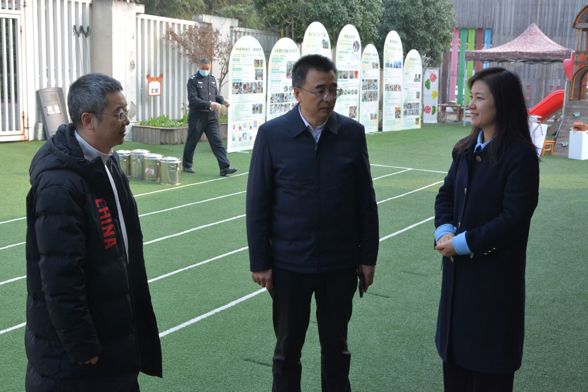 李方裕一行实地走访了幼儿园户外活动场地与室内教学区域,细致了解了幼儿活动空间的规划布局、设施配备及安全防护措施,对园所温馨宜人的环境创设与富有童趣的教育氛围表示充分肯定。