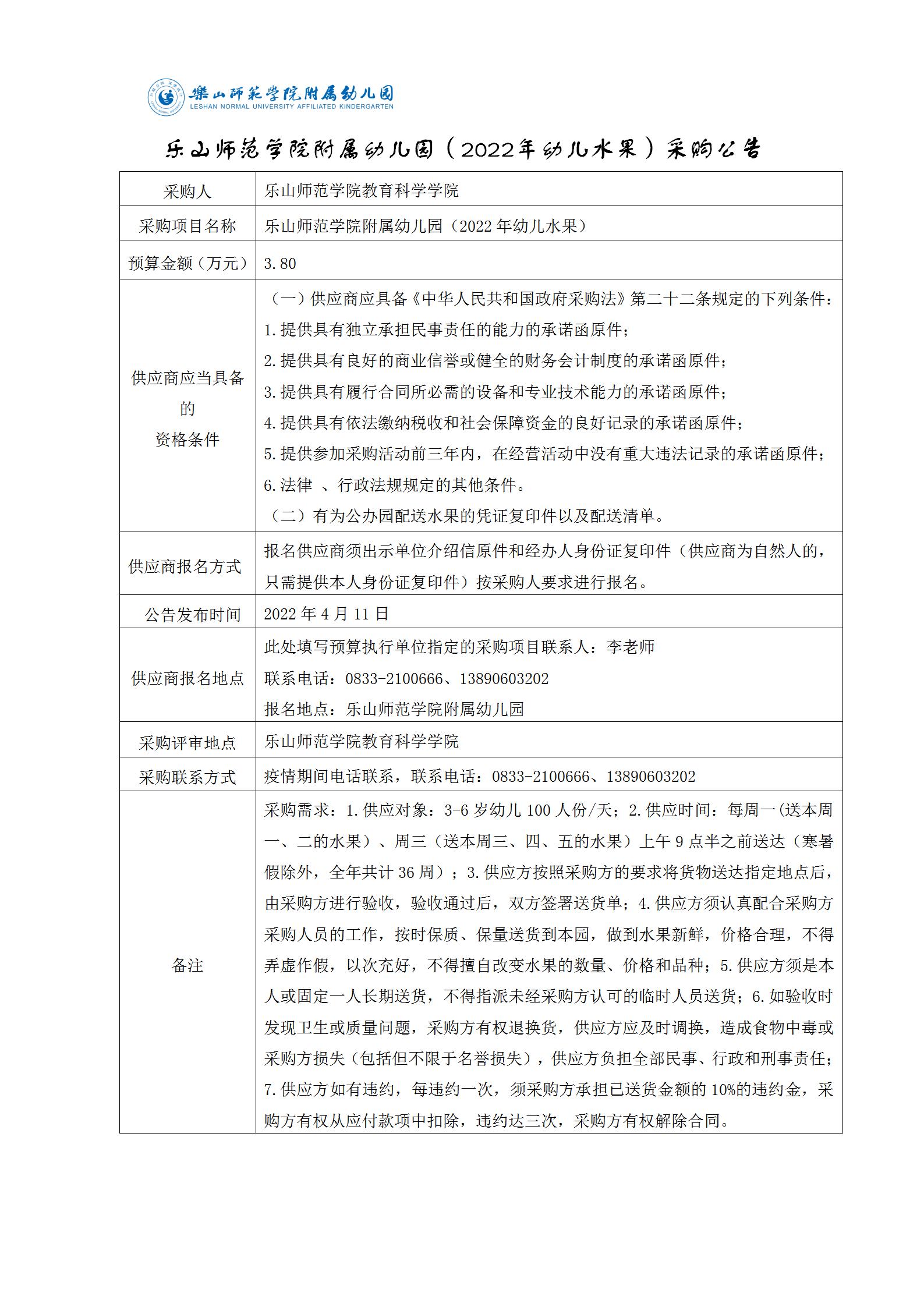 pbw必威西汉姆联附属幼儿园(2022年幼儿水果)采购公告