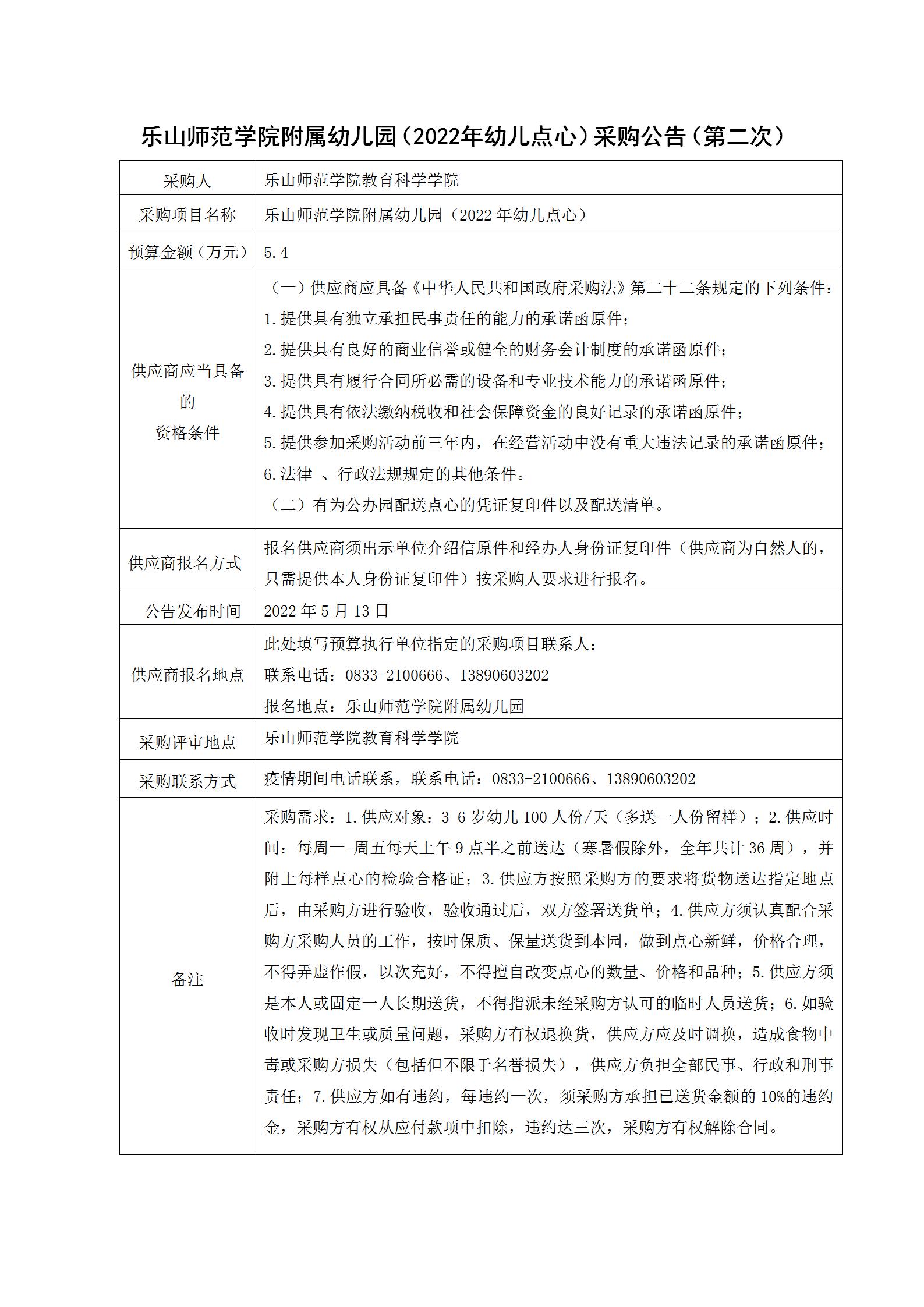 pbw必威西汉姆联附属幼儿园(2022年幼儿点心)采购公告(第二次)