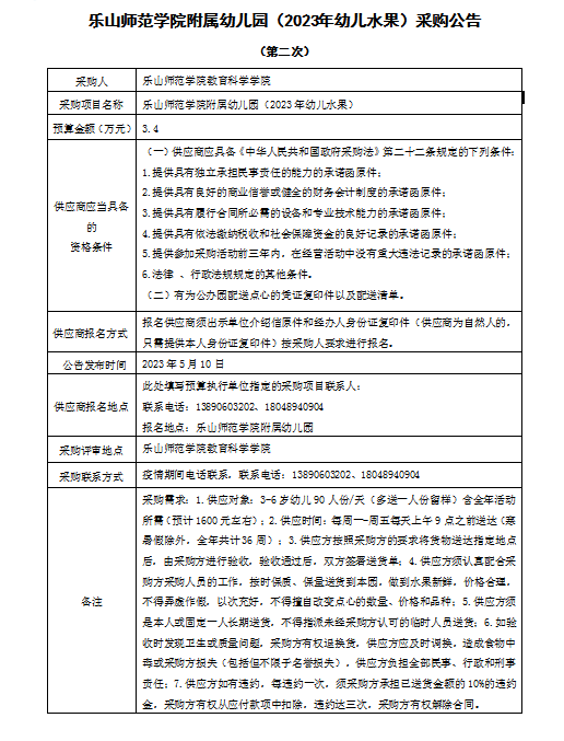 (第二次)pbw必威西汉姆联附属幼儿园(2023年幼儿水果)采购公告