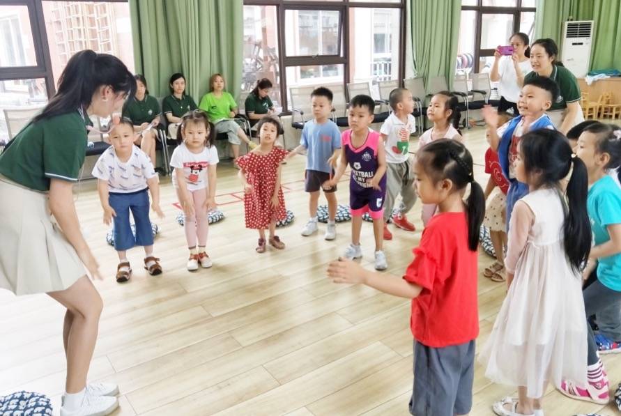 老师们进入园区,聆听罗华江园长详细介绍幼儿园园区环境和马荣国际课程课程理念,并分时间段陆续安排了健康领域体育活动《跳海浪》、艺术领域奥尔夫音乐活动《蜜蜂加加油》、科学领域数学活动《神奇的扑克牌》和语言领域活动《好玩的毛毛虫》。课后,老师们通过教研座谈的形式,对教师所执教的课进行了细致到位的点评,在充分肯定教师优点的同时,也指出了相应的问题,主要针对授课教师在课堂中细节的不足,引导教师细致分析,将新课标理念融入个人的理解,毫不保留地呈现给授课教师,为各领域教师指明了提升方向。