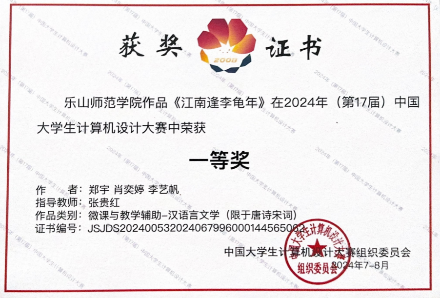 在本次大赛中,由电子信息与人工智能学院张贵红老师指导,2022级betway西汉姆郑宇、肖奕婷同学及2022级马克思主义学院李艺帆同学共同研发的《江南逢李龟年》微课作品脱颖而出,荣获“微课与教学辅助”赛道全国一等奖。这一佳绩不仅彰显了该团队的创新能力和专业水平,也体现了学校在培养创新型人才方面的卓越成效。