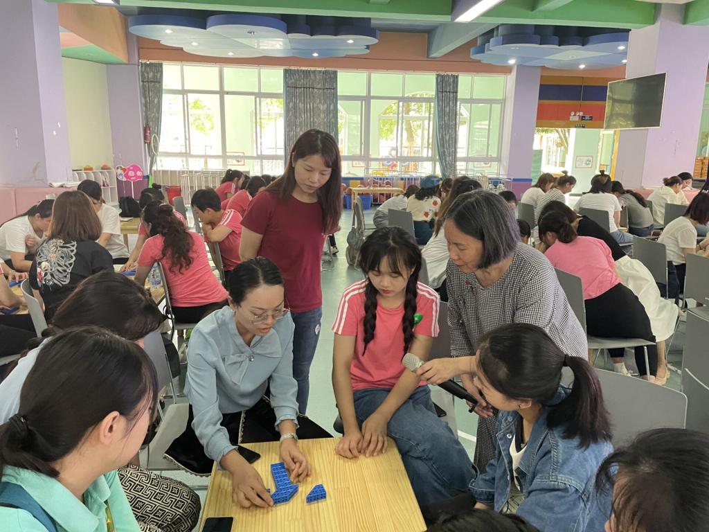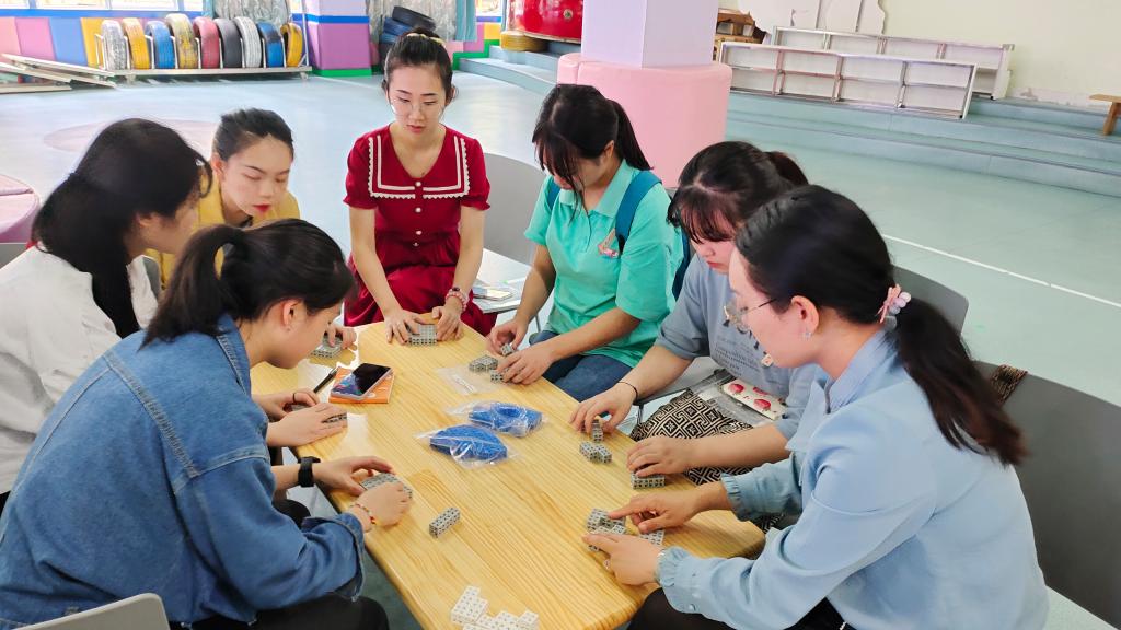 谢教授先是抛出“科学素养是什么”这一问题,接着总结出“怎样学比学什么重要”这一核心观点;并引导老师们要多角度看问题,培养思维的条理性、逻辑性、艺术创作能力和动手实践能力。在活动过程中,谢教授为老师们提供有趣的益智玩具让老师们体验、交流玩法和思路。