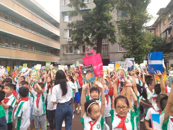 在本周三,县街小学迎来了——童心筑梦,“嘉”书飘彝的活动。此次活动是为了给山区的小朋友捐赠书籍。周三早上,同学们带着自己心爱的书籍来到学校,早操时间,一起在操场集合。语文老师余柯忻领读了动员誓词,然后同学们把书收起来统一交上去。相片中的小朋友将手中的书高高举起,脸上洋溢着笑容。这不仅是一次知识的分享,更是架起了一座友谊的桥梁。