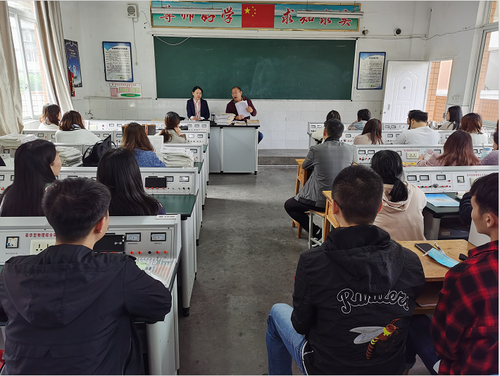 在五通桥中学,学校教导主任彭远安与实习学生一道交流和探讨教学和班主任工作,他指出,“教育实习是实习生与指导老师相互碰撞,共同受益的过程”,他给了同学们许多建议,并表示将一如既往地为实习生做好服务工作。
