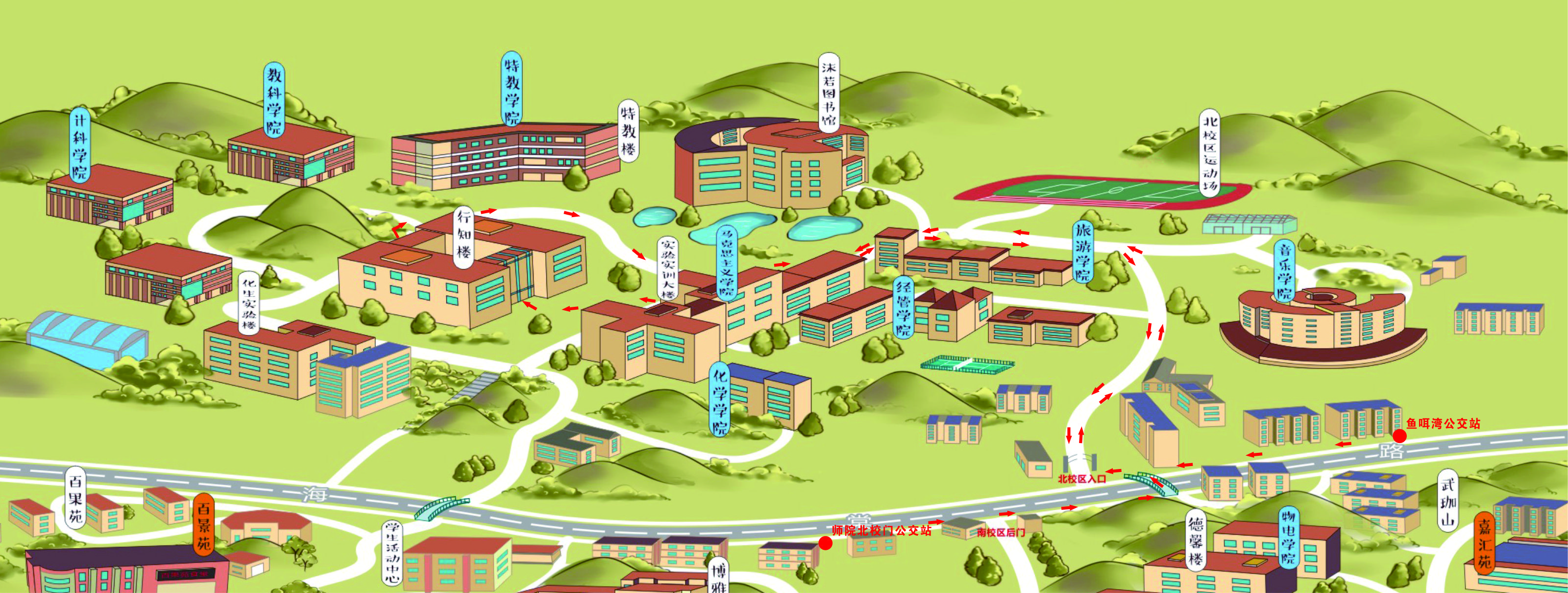 公交:6路、8路、10路、13路,在“鱼咡湾公园”站或“师院北校区”站下车。