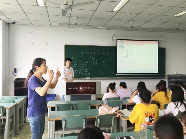 除了工作期间曾到华南师范大学学习2年,姜立刚已经在我校工作了8年。她既是我校教科学院小学教育专业“小学数学教学设计”“数学思想与方法”等专业课程老师,也是一名需承担部分全校教师教育课程的公共课老师。2017年底,姜立刚在广州华南师范大学学习期间,她发现了一个有趣的现象:清华大学、浙江大学、四川大学都在着力培养本科生的研究能力。“我们的孩子可不可以这样去培养?我当时就在想。”带着这样的困惑与憧憬,姜立刚开始去研究:一个优秀的老师,到底应该具备怎样的能力体系。在她看来,能把课上好只是老师专业发展中的第一步,是基础和前提,但绝不是一个老师成为优秀老师乃至卓越老师最根本的东西。而更重要的是“研究能力”,这是优秀老师共有的品质。姜立刚说:“研究的英文单词是research,‘re’反复,‘search’探索琢磨。”她回顾这么多年的教学,也培养过许多优秀的小学老师,但省级和国家级名师却还是空白。姜立刚开始观察自己的学生,觉得他们在语言表达、板书设计和写教案方面都没有太大问题,最为缺乏的就是一种对教学反复琢磨,即研究的能力。